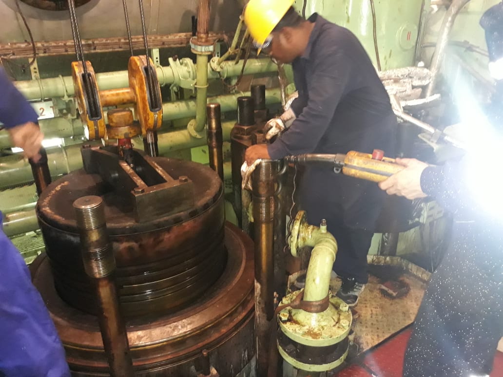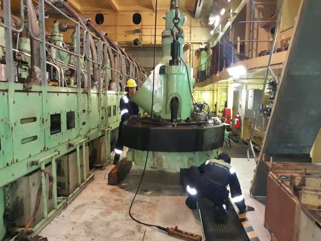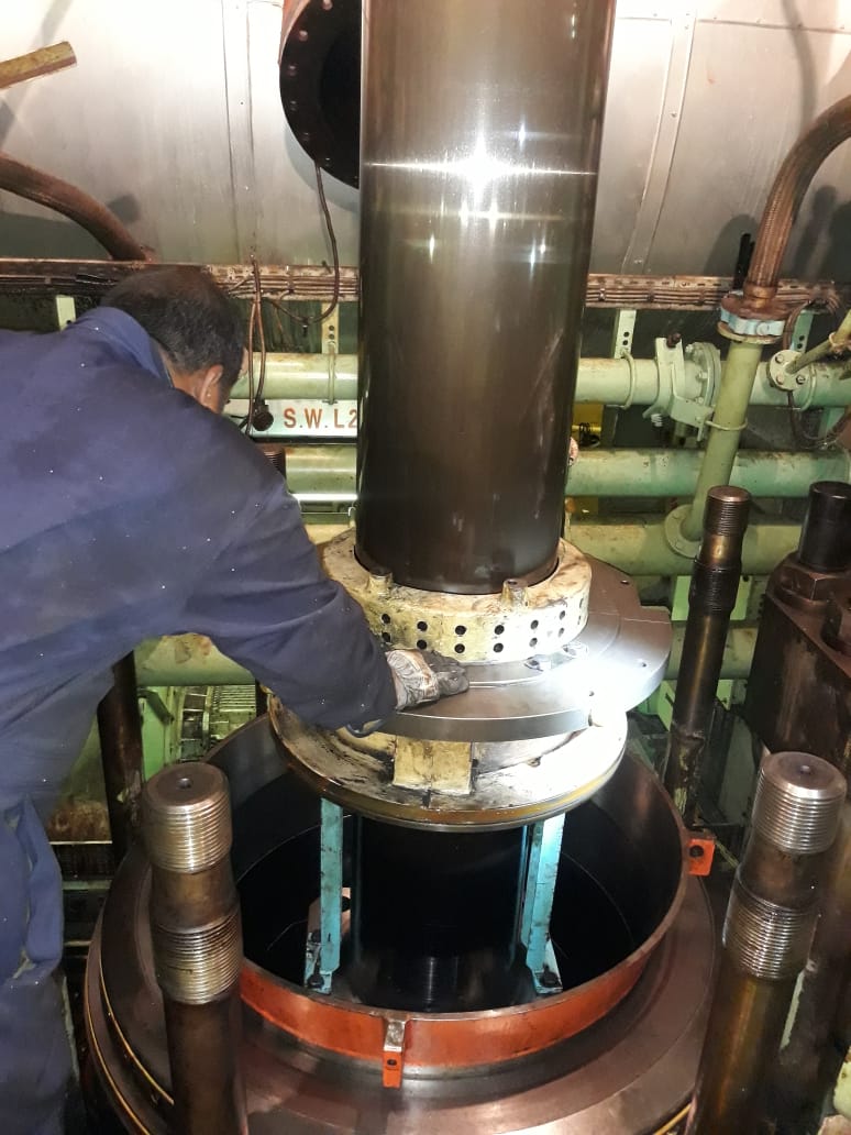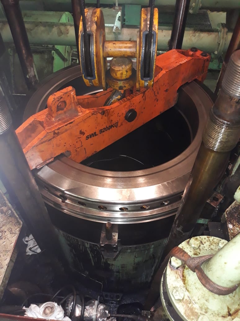 Main engine overhauling and lainer replace. Engine model - SULZER -12RT-FLEX-96C